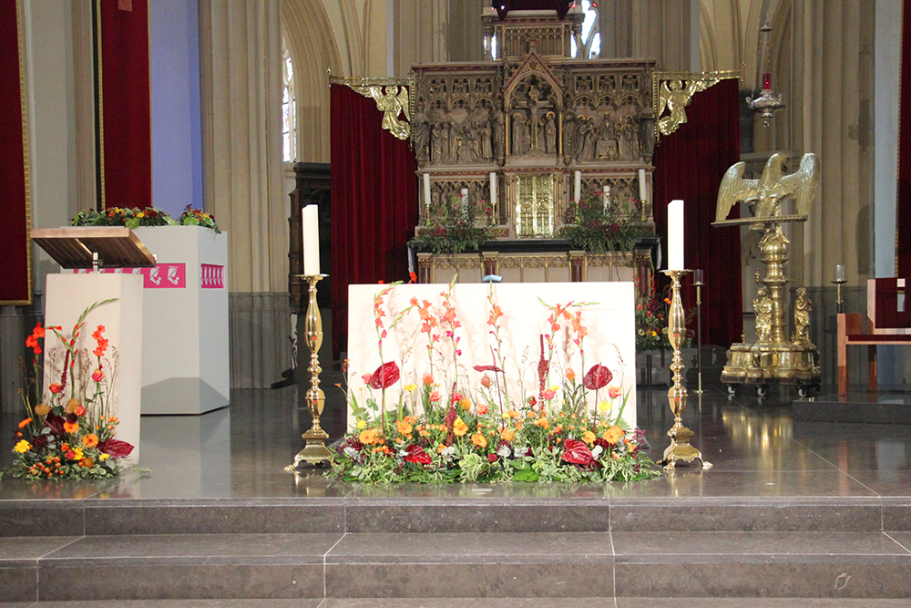 De Sint-Quintinusverering aan de Helbeek te Hasselt begon reeds in de 7de eeuw ten tijde van de vroegmiddeleeuwse kerstening. Omstreeks 1000 werd Hasselt een autonome parochie en bouwde men een romaans gebedshuis dat in 1218 onder het patronaatschap van de abdij van Herkenrode werd geplaatst. Het huidig bakstenen gebouw is een gotische kruiskerk uit de 15-16de eeuw, aanleunend tegen een romaans-gotische westtoren (11-13de eeuw) in natuursteen, nl. roestkleurige ijzerzandsteen en bleke mergelzandsteen. Bij de oprichting van het autonome bisdom Hasselt in 1967 verwierf de decanale Sint-Quintinuskerk de status van kathedraal. Meerdere stukken van het kerkmeubilair zijn afkomstig uit de voormalige augustijnenkerk en de abdij van Herkenrode. In de context van de Virga Jessefeesten, verankerd in de middeleeuwse bedevaarttraditie en reliekenverering, vermelden we de reliekenkast met de schedels van de heilige Ursula en de 11 000 maagden en de monstrans met de Bloedende Hostie van Viversel. Deze stukken worden getoond in de kooromgang.