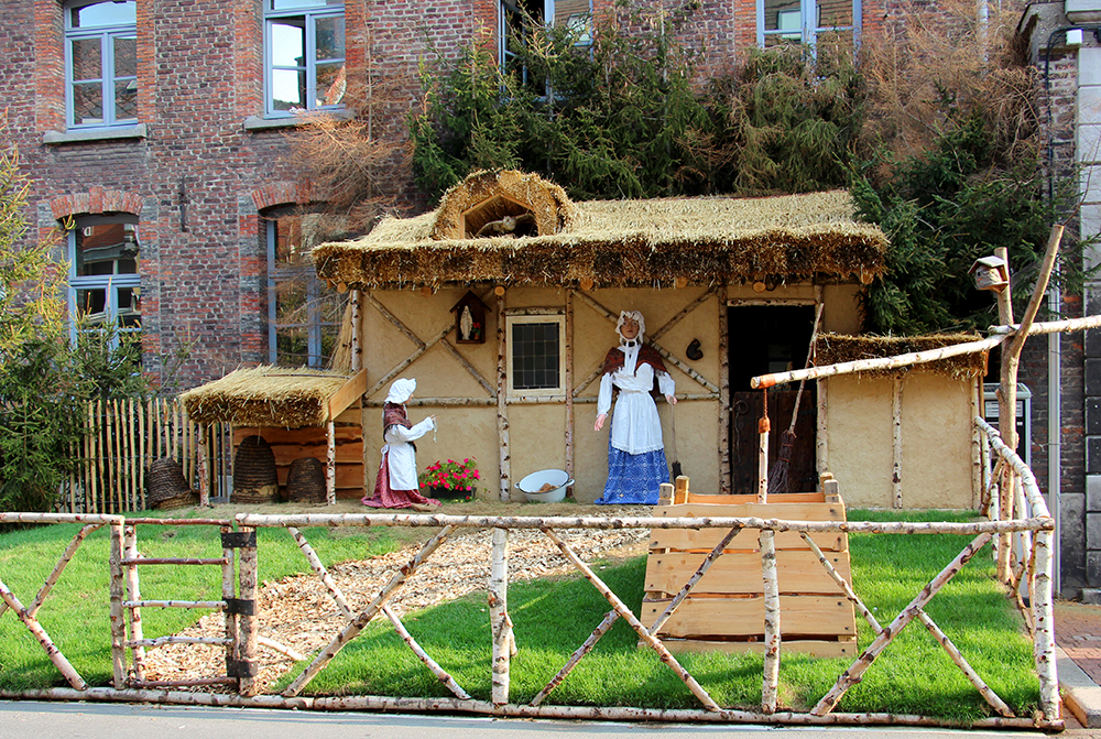 Tegen de straatgevel van het Minderbroedersklooster, waar het Heilig Paterke vereerd wordt, staat tijdens de Virga Jessefeesten het landelijk optrekje van Hendrik en Katrien, volgens de legende het oudste koppel van Hasselt. Het is zowaar de enige rot – een rot is een uitgebeeld tafereel of een versiering aangebracht door wijkbewoners naar aanleiding van de Virga Jessefeesten – die sinds mijn jeugdjaren onveranderd hetzelfde concept vertoont. Het tafereel verwijst naar de vroegste archivalische oorkonde waarin er sprake is van het Henrixdorp. Interessant … want ook Hasselt is ooit een nederig dorp geweest en heeft acht eeuwen nodig gehad om zich spontaan tot de huidige, eigentijdse stad te ontwikkelen. Kortessem ontpopt in de nacht van 31 december ‘24 op 1 januari ’25 ineens van dorp tot stad wat allicht met ondraaglijke barensweeën gepaard zal gaan. En als er in ‘hoofdstad van de smaak’ geen Virga Jessefeesten zijn dan rusten Hendrik en Katrien uit op een bank aan de Grote Markt, een fotogeniek kunstwerk (1989) van Marc Cox (°1944, Stevoort).
