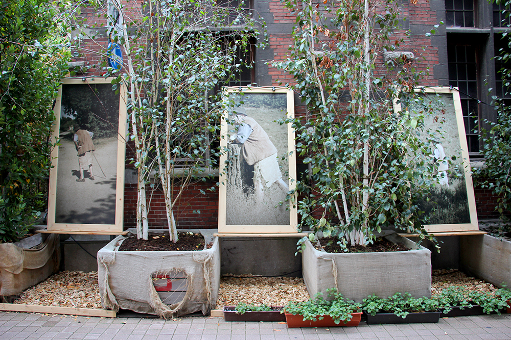 Deze eigentijdse bezinningsruimte, die gedurende meerdere decennia gesloten bleef en bij veel Hasselaren onbekend was, is ter gelegenheid van het feestjaar 2024 opnieuw geopend. Ze bevindt zich – geheel onopvallend – op de hoek van Paardsdemer- en de Bonnefantenstraat. De ruimte wordt geanimeerd door een kleurrijke muurschildering van de Antwerpse kunstenares Amber Andrews (°1994). Alida van Geystelen, artistiek directeur van het naburig kunstencentrum Z33: “Het is een ode aan alle vrouwen, doorspekt met referenties aan de kunstgeschiedenis, mythische vrouwen zoals dame ‘Fortuna’ en enkele Hasseltse mirakelverhalen waarin de Virga Jesse de hoofdrol vertolkt”. Zo zie je het brugje over de Demer waar het aangespoelde Mariabeeld opgevist werd, de ladder van de onfortuinlijke schaliedekker (foto) en een vrouw in een zilveren kleed, verwijzend naar het dochtertje van de Morin. Volgens een lokale legende overleed het kind na een val uit het raam maar kwam weer tot leven nadat het op het altaar van de Virga Jesse was neergelegd!